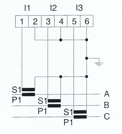 2、標(biāo)準(zhǔn)額定輸入電流為5A, 大于5A的情況應(yīng)使用外部CT。如果使用的CT上連有其它儀表, 接線應(yīng)采用串接方式。接線方式