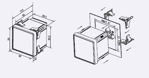 96方形外形及安裝尺寸圖