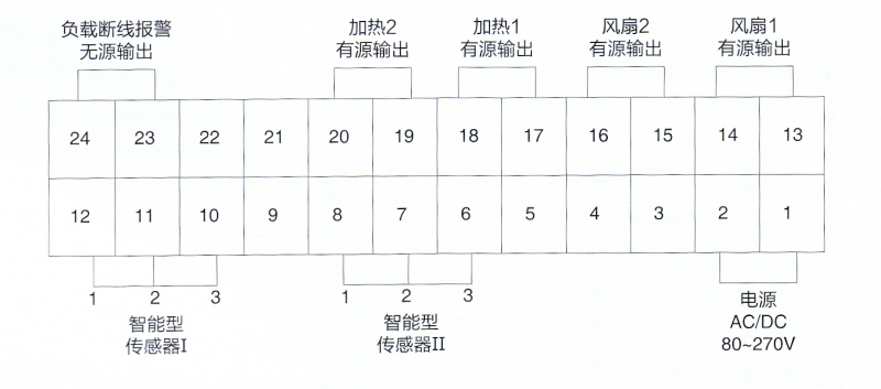 功能2路有源加熱器輸出;2路有源風扇輸出;傳感器負載斷線報警可手/自動TH90-80-2 80 2路溫濕度切換